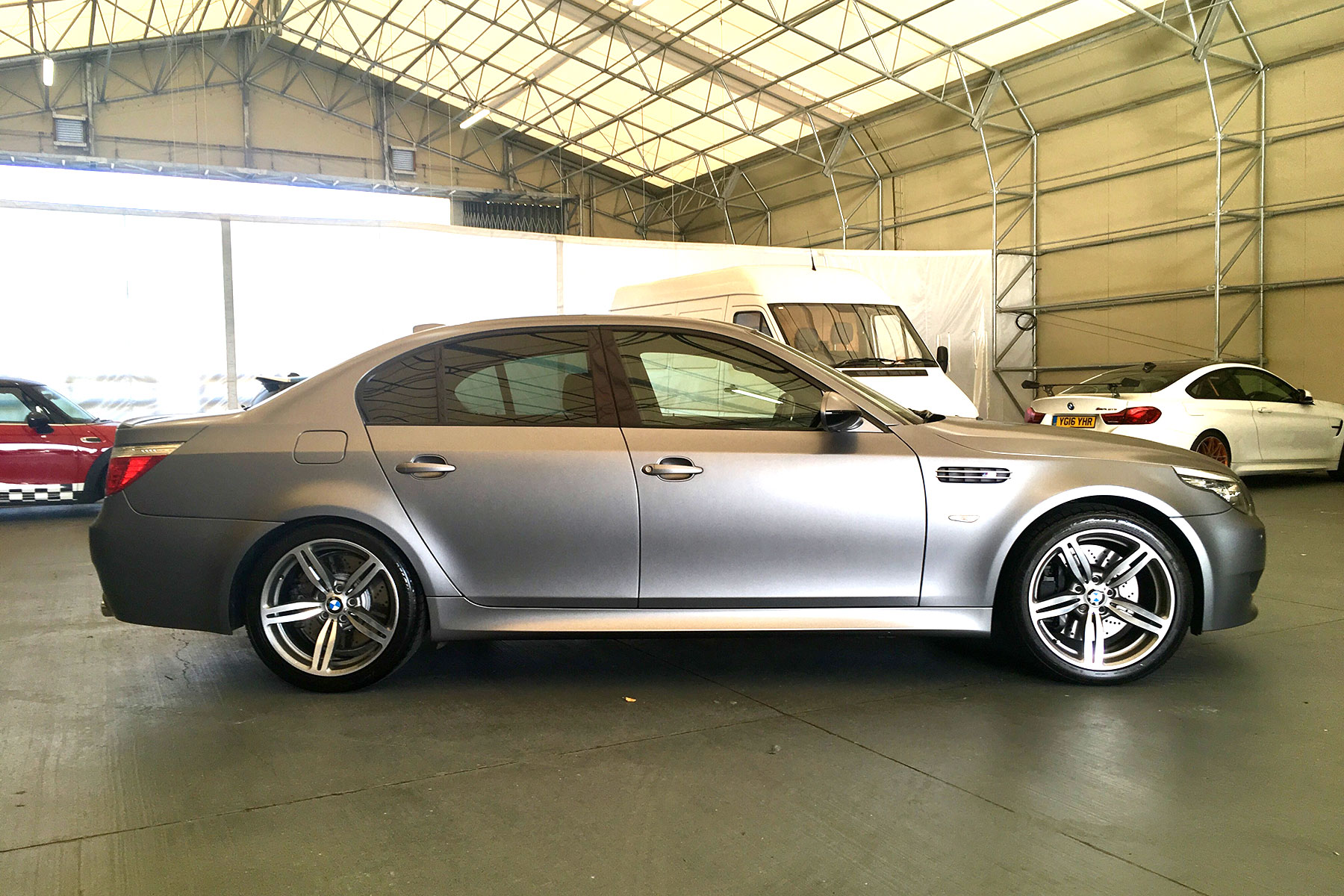 Martin Harrison, curator of the BMW fleet, clearly has a soft-spot for the Bangle-designed E60. “It’s a serious bit of kit,” he says, “that V10 is just epic at high revs”. Even he’ll admit the jerky SMG III automated manual gearbox isn’t BMW’s best, though. That leaves the just-replaced F10, which sounds rorty from its carbon-coated tailpipes, but looks slightly anonymous by comparison. This car is the ‘30 Jahre’ special edition, one of 300 in matt silver to celebrate three decades of the M5.