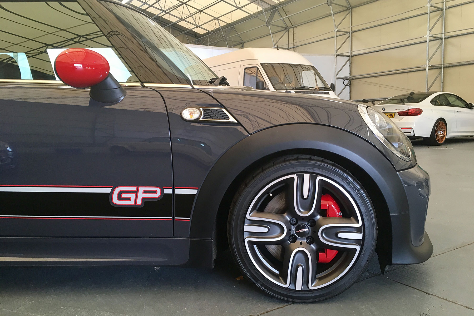 BMW also owns Mini, of course, so Martin’s kept an example of both Works GP hot hatches for the fleet. The original Mini Cooper S with John Cooper Works GP Kit (to bestow its full, tongue-twisting title) was launched in 2006, with a total of 2,000 assembled by Bertone in Italy. It boasted a 218hp turbocharged four, a mechanical limited-slip diff and a strut brace instead of a rear seat. Serious stuff.