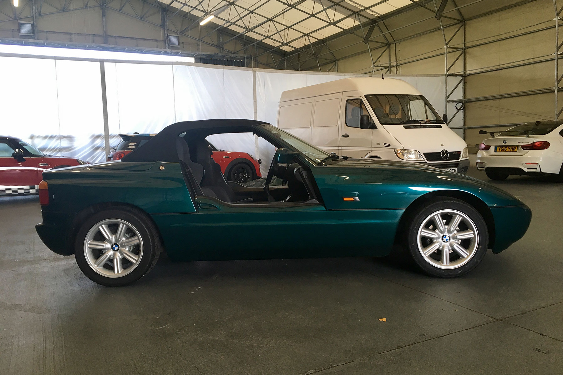 The other roadster in BMW’s collection is humbler, but – to my eyes – more appealing. The plastic-bodied Z1 borrows its 2.5-litre straight-six from the E30 325i, and reaches 62mph in 7.9 seconds. By far its most distinctive feature, though, are its drop-down doors. These disappear into the sills at the touch of a button, allowing you to drive roof-down with the side of the car fully open.