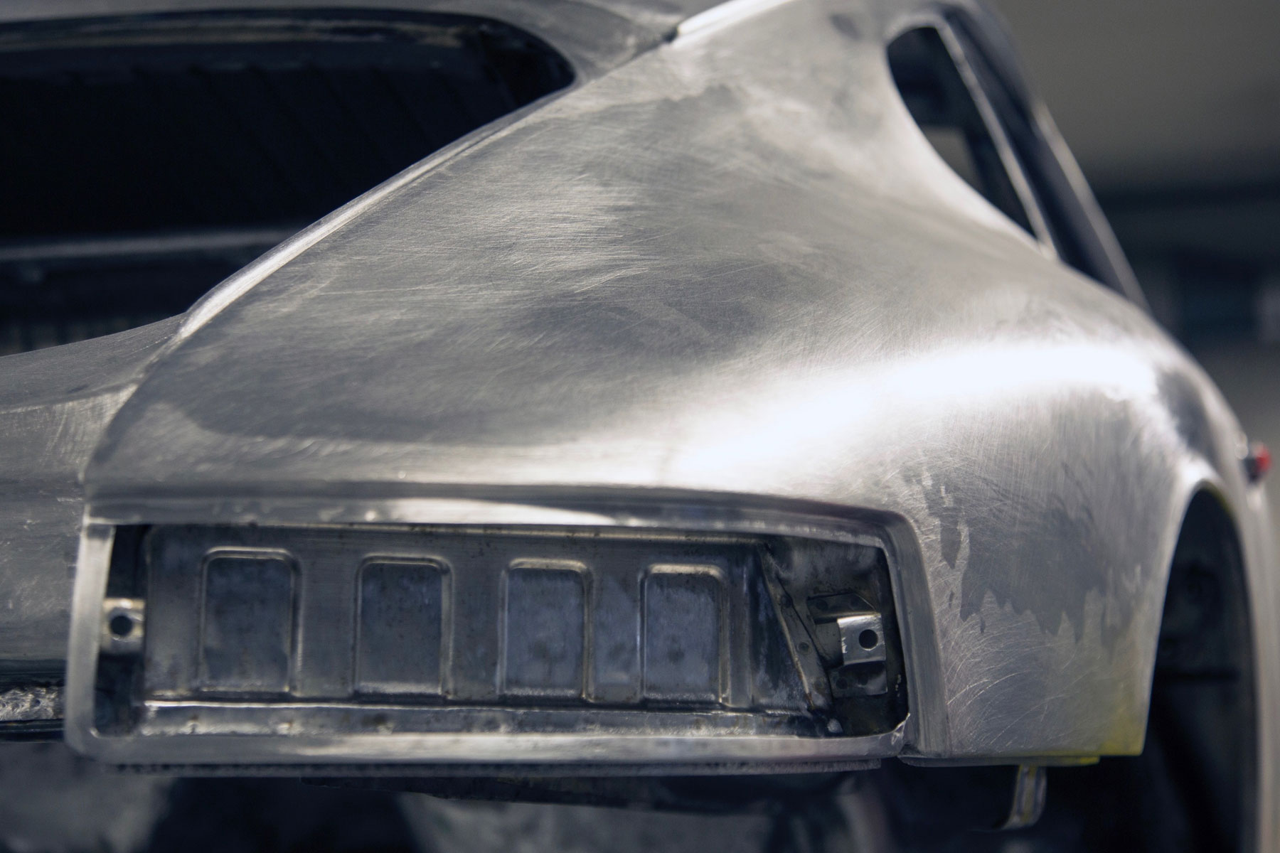 First, ‘Number 57’ was wholly disassembled before the body was placed into a chemical bath for de-rusting and paint removal. Before the process, Porsche assumed that 50% of the body had been destroyed, but it transpired that over half of the sheet metal was worth preserving.